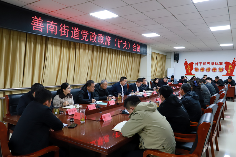 2月23日,善南街道召开党政联席(扩大)会议。街道全体领导干部、派出所、执法中队、各社(片)区书记以及相关岗位负责同志参加会议。