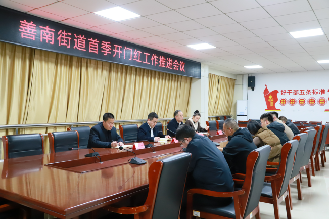 2月26日,善南街道召开首季开门红工作推进会议。党工委副书记、办事处主任党波,党工委副书记、政法委员王永,办事处副主任李栋,办事处副主任刘华,各部门负责人及相关工作岗参加活动。