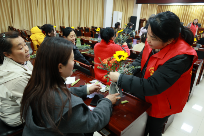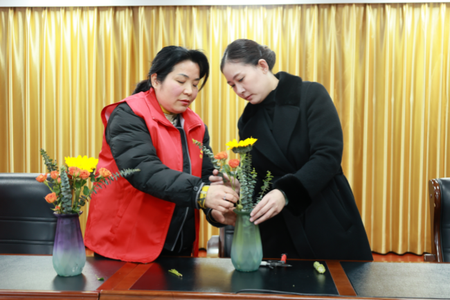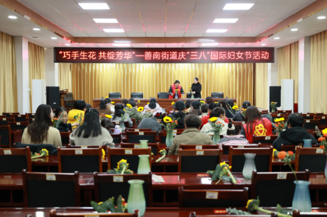 春风送暖,芳菲拂面。为庆祝“三八”国际妇女节,丰富辖区女性居民的精神文化生活,3月7日,善南街道妇联携手荆善南苑社区举办“三八”妇女节主题创意插花会,办事处副主任张晓冉参加活动,为辖区妇女姐妹们送上一份浪漫与关怀,让大家在欢声笑语中共度美好节日。