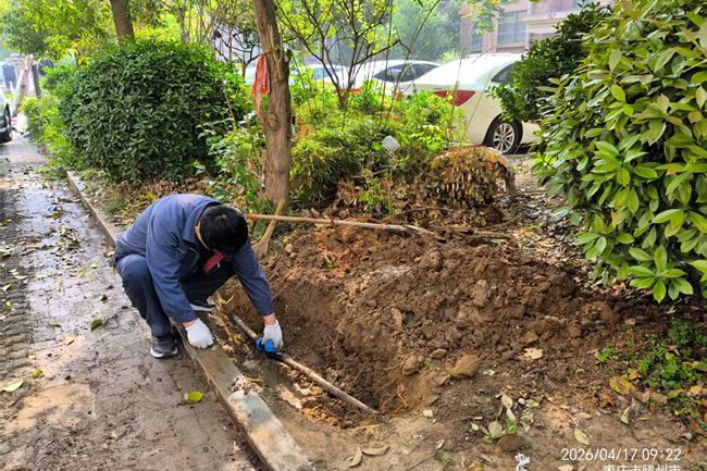 春和景明,植绿正当时。善南街道抢抓春季植绿黄金期,以“见缝插绿、简约精致、四季有景”为原则,持续推进绿化提升工程,在居民区周边、道路两侧新栽海棠等观赏树木,同步对辖区道路隔离带、公共绿化带开展苗木补植补栽,补齐绿化短板。为确保绿植存活率,街道强化常态化养护管理,安排专人定期开展苗木修剪塑形、病虫害防治、浇水灌溉等工作,精心呵护每一株绿植,全力打造“四季常青、三季有花”的生态景观,让绿色延伸至居民家门口,让辖区处处皆风景、步步能赏绿,为群众构筑起宜居宜游的生态“会客厅”。
