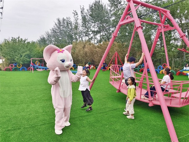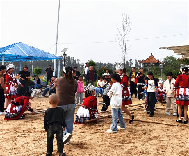 亲子互动乐趣多,文化传承润心田。丛林乐园与萌宠乐园里充满了孩子们的欢声笑语,各类机动游乐项目前也排起了长龙,处处洋溢着亲子共游的温馨与畅快。在亲子DIY手工坊内,家长与孩子围坐一桌,大手握小手,一同揉捏面团制作象征团圆的月饼,细心填充药材缝制寓意安康的中草药香囊。与此同时,国庆知识问答、投壶、蒙眼敲锣、猜灯谜等互动游戏区也人气高涨,孩子们在游戏中了解传统文化,在互动中感受节日乐趣。