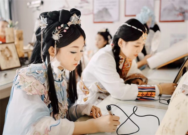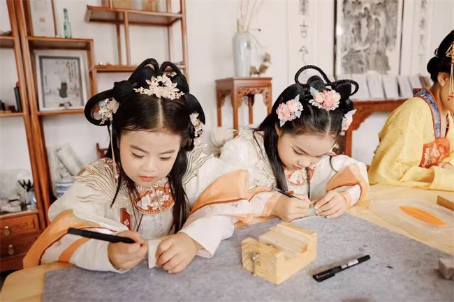 汉服游园展风采,非遗体验续文脉。汉服体验馆内,群众精心挑选心仪的服饰,梳起传统发髻,漫步在秋意盎然的景区中,仿佛穿越千年,成为节日里一道流动的风景,不少群众驻足欣赏、拍照留念。在共富一号院、共富二号院的非遗小院里,烙画、篆刻等传统技艺吸引了大批群众亲身体验。在传承人的悉心指导下,他们专注地创作着自己的作品,当一件件独具特色的作品完成时,脸上无不洋溢着自豪的笑容。这些亲手完成的作品,不仅是节日的独特纪念,更是文化传承的生动实践。