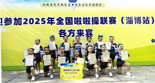 11月1日,2025年全国啦啦操联赛(淄博站)在淄博市体育中心综合体育馆圆满落幕。经过激烈角逐,滕州市西岗镇中心幼儿园啦啦操队在公开幼儿甲组赛事中脱颖而出,荣获全国第一名,成功摘得冠军奖杯。