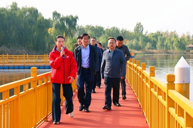 王开峰一行实地察看了锦瑞重工年产12万吨机床部件铸造项目、锦亿源新材料年产1.2万吨塑料片材及成品项目、西岗镇采煤塌陷地华电100兆瓦集中式光伏发电项目等重点项目及九龙湾湿地乡村振兴示范区-北赵融合区、九龙湾嘉艺非遗农耕研学基地、西岗镇中心卫生院建设情况。