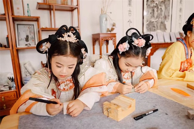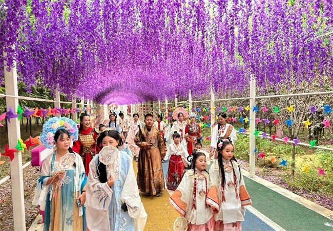 此外,还有写春联、剪窗花、扎灯笼、做福袋、画糖画等暖春送福体验项目,成品可直接带走。乡村创客街汉服体验馆还提供精美汉服租赁,穿上汉服漫步九龙湾,在传统礼仪展示区学习古代礼仪知识,瞬间穿越时空,解锁别样乐趣。