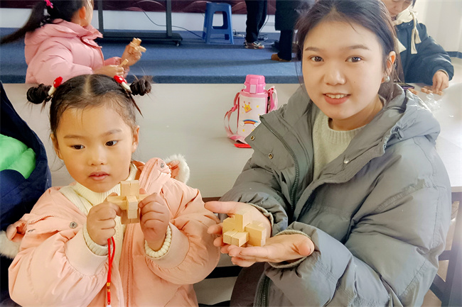 为传承中华优秀传统文化,弘扬精益求精的工匠精神,丰富青少年假期精神文化生活,1月1日,西岗镇新时代文明实践所联合九龙湾景区在九号院举办“探寻榫卯智慧,巧手解锁匠心”鲁班锁亲子拼装活动,带领孩子们在动手动脑中感受非遗魅力,体验传统技艺之精妙。