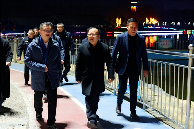 刘宝斌一行来到九龙湾湿地公园,边走边看,与相关负责人、商户深入交流,详细了解景区游客流量、客流疏导管控、安全生产责任落实以及节日期间业态安排等情况。