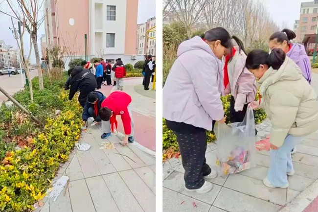 活动中,孩子们化身“雷小锋”志愿者,走进社区、公园、主次干道开展环境卫生清理行动。在社区、公园,大家手持扫帚、垃圾袋,弯腰捡拾纸屑、烟头,清理卫生死角,全力净化人居环境;在主次干道,大家拿起抹布,精心擦拭交通护栏、公共设施,不放过任何一处污渍;在膳合院子,大家分工协作,捡拾地面垃圾、擦拭桌椅板凳,让便民场所焕然一新。大家用小手扮靓家园,用行动传递雷锋精神,红马甲的身影成为春日里最动人的风景。
