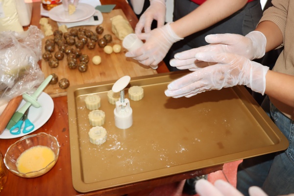 活动现场,烘焙师傅提前备好面粉、馅料和模具等,职工们分组协作,揉皮、包馅、压模、烘焙,欢声笑语不断。年轻的同事向师傅请教传统月饼的“收口”技巧,老职工则分享儿时过节的记忆。一枚枚圆嘟嘟黄灿灿的月饼诞生,甜香弥漫整个会场。随后,职工们将亲手制作的月饼装入礼盒,互相分享,传递节日温暖。