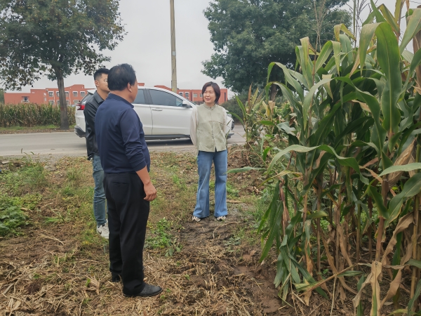 督导中,孙名君重点查看积水地块作物生长及倒伏状况、农机作业进度和秋种筹备情况。在积水农田现场,她仔细查看沟渠疏通效果,询问疏导工具设备调配使用情况;在农机作业区域,了解玉米收割机调度数量及作业效率;在秋种筹备地块,俯身查看土壤湿度,与农技人员交流整地、施肥、种子准备等工作细节,叮嘱要抓住降雨间隙推进生产,减少损失。