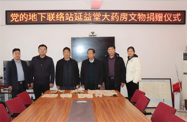 12月17日下午,党的地下联络站延益堂大药房文物捐赠仪式在羊庄镇中共滕县县委、滕县抗日民主政府旧址纪念馆举行。羊庄镇总工会主席张兆登,党委委员、宣传委员方立及庄里党总支相关同志参加活动。