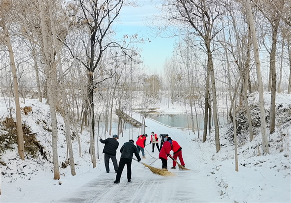 破冰除雪保畅通 齐心协力显担当。以雪为令,闻冰而动。各村党员干部、志愿者带头,群众自发加入,铁锹、扫帚、机械齐上阵,尽管双手被冻得通红,但手中的工作却始终没有停下。大家干得热火朝天,齐心协力扫通一条条道路,为群众出行和车辆通行创造了安全条件。