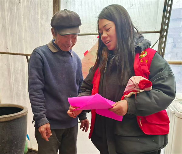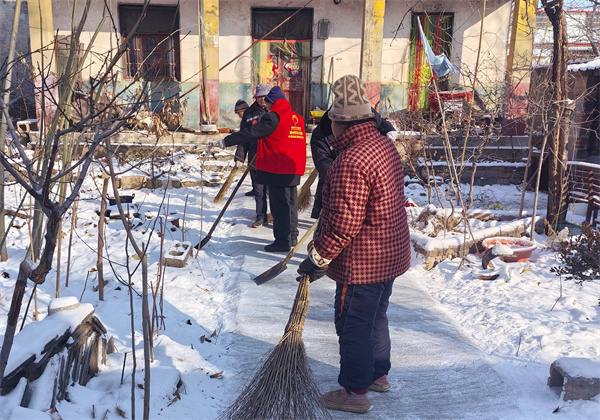 防范宣传护安康 独居老人有依靠。结合入户走访,镇村干部和志愿者积极开展冬季用电、用气、取暖安全宣传,增强群众自我保护意识。针对独居老人、残疾人等特殊群体,开展“敲门送暖”行动,详细询问生活需求,帮助清扫院落积雪,检查取暖设备安全,确保他们平安温暖过冬。