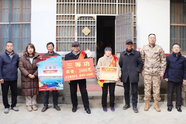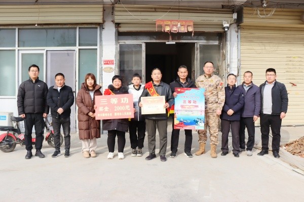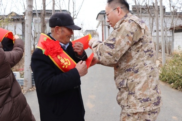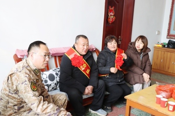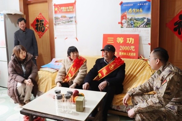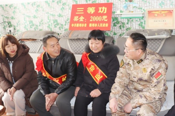 为大力弘扬拥军优属优良传统,切实增强军人荣誉感、军属自豪感,2月9日,滕州市退役军人事务局军队离休退休干部休养所副所长赵方一行专程来到羊庄镇,为荣立三等功的现役军人吴振、韩耀辉、耿德付家庭送上立功喜报与慰问金,将沉甸甸的荣誉与党和政府的关怀送到军人家属身边。羊庄镇党委委员、武装部部长曹可及相关部门、党总支、村负责同志陪同慰问。