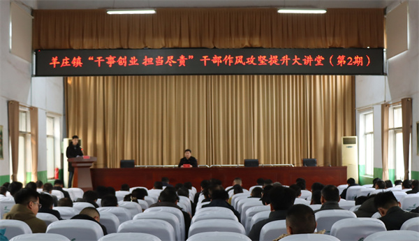 3月9日,羊庄镇“干事创业 担当尽责”干部作风攻坚提升大讲堂(第2期)开讲。全体领导干部、机关干部、市派第一书记参加活动,镇党委副书记赵健主持活动。