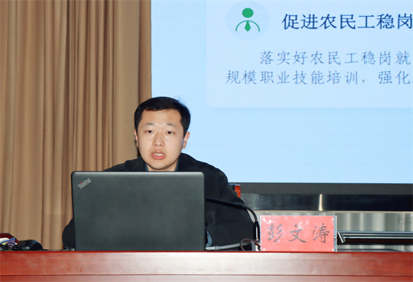 会上,平安法治办公室副主任(挂职)彭文涛以《锚定农业农村现代化 扎实推进乡村全面振兴》为题作专题分享。他结合学习中央一号文件精神的心得体会,围绕滕州市推进乡村振兴的具体实践,深入分析了当前农业农村发展的新形势新任务。他指出,要加快推动农业转型升级,努力将农业打造为现代化大产业;要稳步提升农村基础设施和公共服务水平,使农村基本具备现代化生活条件;要千方百计拓宽农民增收渠道,让农民生活更加富裕美好,为推进中国式现代化提供坚实支撑,为加快建设“中华善城、现代滕州”、奋力打造现代化县域引领城市贡献羊庄力量。