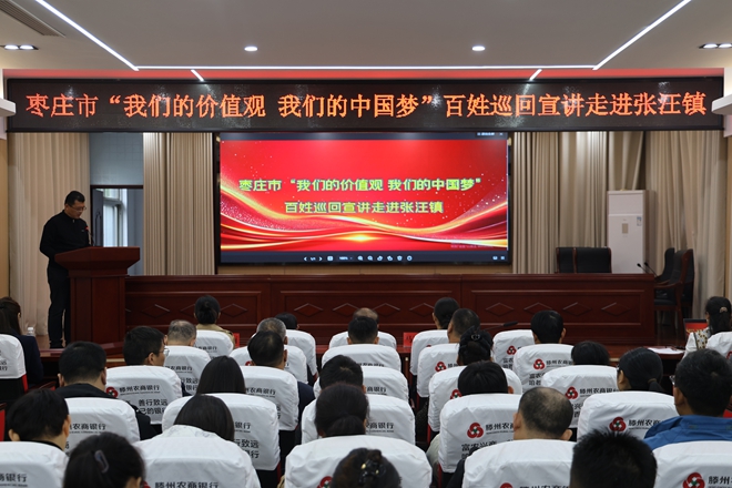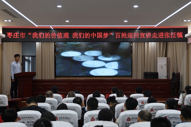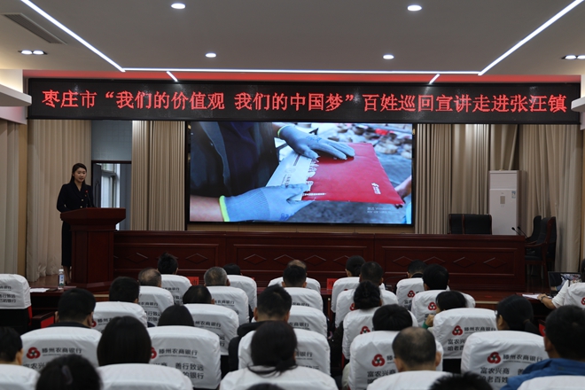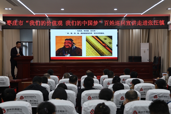 为深入贯彻学习“社会主义核心价值观”,让其思想内涵走进基层、贴近百姓,让价值引领融入日常、浸润人心,凝聚追逐“中国梦”的强大力量。10月12日,由枣庄市市委宣传部主办的枣庄市“我们的价值观 我们的中国梦”百姓巡回宣讲活动在张汪镇南二楼会议室成功举行。枣庄市委讲师团宣讲研究室主任、教授王辉,枣庄市委讲师团讲师杨玉珍,滕州市委宣传部副部长、市网信办主任、市网络安全保障中心主任马晓琳,滕州市委宣传部意识形态工作室主任肖雨出席了本次活动。镇全体机关干部到场聆听,会议由镇党委副书记、政法委员孔德国主持。