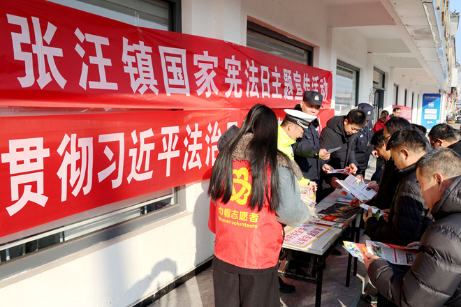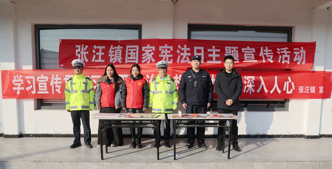 为扎实学习宣传贯彻习近平法治思想、习近平文化思想和习近平总书记关于宪法的重要论述,认真实施法治宣传教育法,切实弘扬宪法精神、维护宪法权威、推动宪法实施,12月4日,张汪镇紧扣“学习宣传贯彻习近平法治思想,推动宪法深入人心”活动主题,组织司法所、派出所、交警队、团委、妇联、新时代文明实践所等多部门,在镇驻地周边开展国家宪法日主题宣传活动。