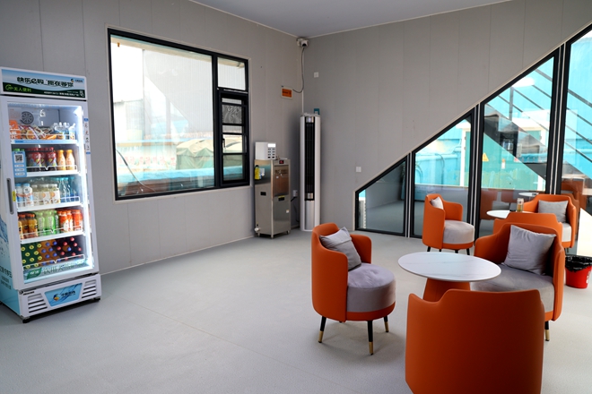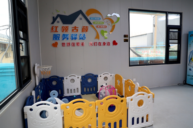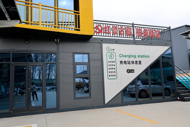 除了先进的能源设施,驿站特别打造了“红领古薛服务驿站”,为车主与过往群众提供全方位便民服务。驿站内设有休息区、免费茶水供应、手机充电、儿童娱乐角、读书角及全覆盖WiFi网络,并结合公共厕所、场地环境提升,构建了一个舒适、便捷、友好的休憩空间,极大提升了充电过程中的体验感与满意度。