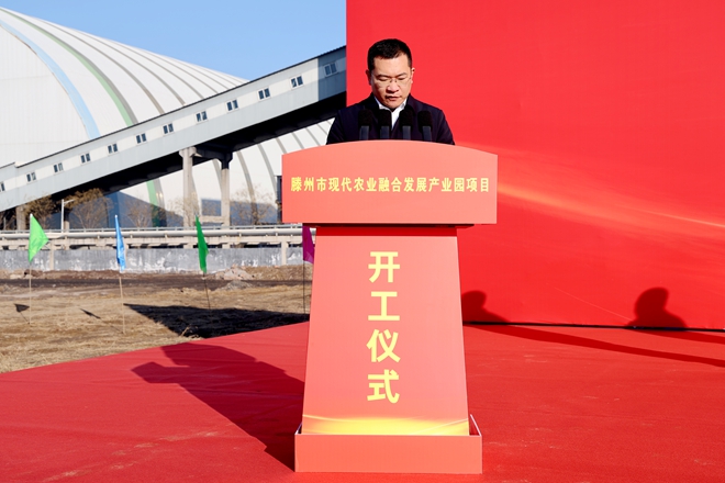 现场气氛热烈、简朴庄重。仪式上,市安居建设投资有限公司董事长胡修峰详细介绍了项目基本情况。市城市国有资产经营有限公司党委书记、董事长李鲁峰在讲话中表示,国企将充分发挥自身资源优势,全力保障项目建设,努力将产业园打造成为政企协作、城乡融合的示范项目,为滕州现代农业高质量发展注入强劲动力。