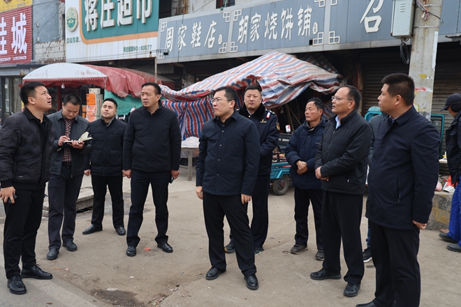 张鑫一行先到蒋庄集贸市场进行实地查看,对村主干道路沿线占道经营、堆放等问题现场督导整改,同时要求相关部门要加强路域巡查,全面整治占道经营现象,完善集市配套服务设施,保障人民群众经营方便、出行安全,切实改善村容村貌。随后又到张汪村等地,入村查看村居环境整治成效,要求各村各部门要以村级人居环境常态化整治为抓手,切实增强责任意识,高标准推进路域环境提升行动,持续为群众打造洁净优美的生产生活环境。