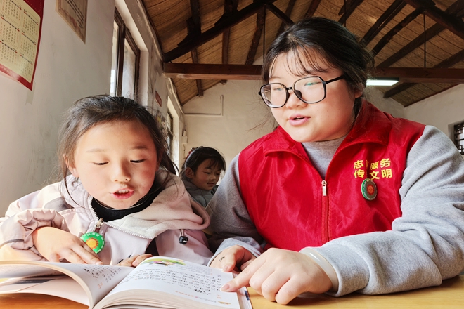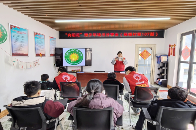 以文育人,以读润心。两场活动均设置知识拓展环节,通过观看名人励志故事与成语典故视频,让青少年在趣味学习中开阔视野、增长见识,互动问答气氛热烈。活动尾声,全体青少年齐声诵读毛主席诗词《五律·张冠道中》,“朝雾弥琼宇,征马嘶北风。露湿尘难染,霜笼鸦不惊......”豪迈的诗句回荡乡村,让红色基因与家国情怀在诵读中根植“心田”。