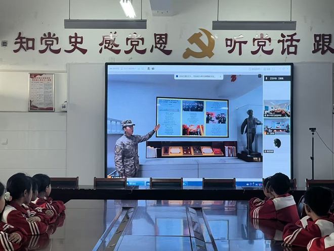 线上参观过程中,现场学生还与负责讲解的雷锋班战士进行了实时连线。怀着对雷锋精神的好奇,孩子们勇敢提问:“请您介绍一下什么是雷锋叔叔的钉子精神?”雷锋班战士耐心细致地为孩子们解答,用通俗易懂的语言阐释了钉子精神中“挤”和“钻”的核心内涵——既要像钉子一样珍惜时间、挤时间学习,也要像钉子一样刻苦钻研、迎难而上。这番解答让孩子们对雷锋精神有了更具体、更深刻的理解。讲解员细致讲解,师生们积极互动,在直观生动的参观体验中,深刻理解了雷锋精神的时代价值,更坚定了践行雷锋精神、争做时代新人的信念。