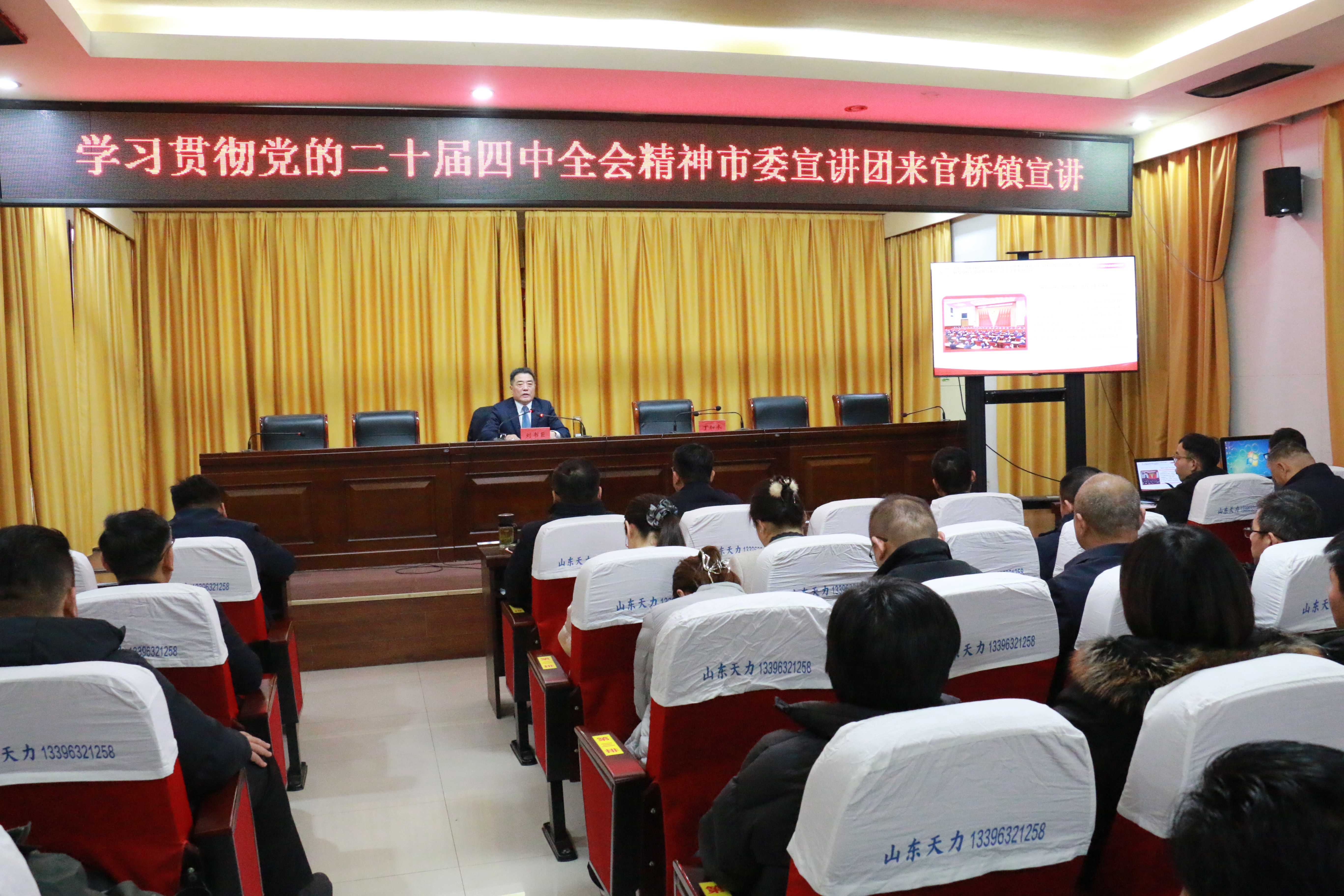 12月15日,学习贯彻党的二十届四中全会精神市委宣讲团成员、市城乡水务局党组书记、局长刘书巨赴官桥镇开展党的二十届四中全会精神专题宣讲,官桥镇党委书记丁加水主持宣讲会。官桥镇全体领导干部、机关部门负责人,各村党支部书记等同志参加会议。