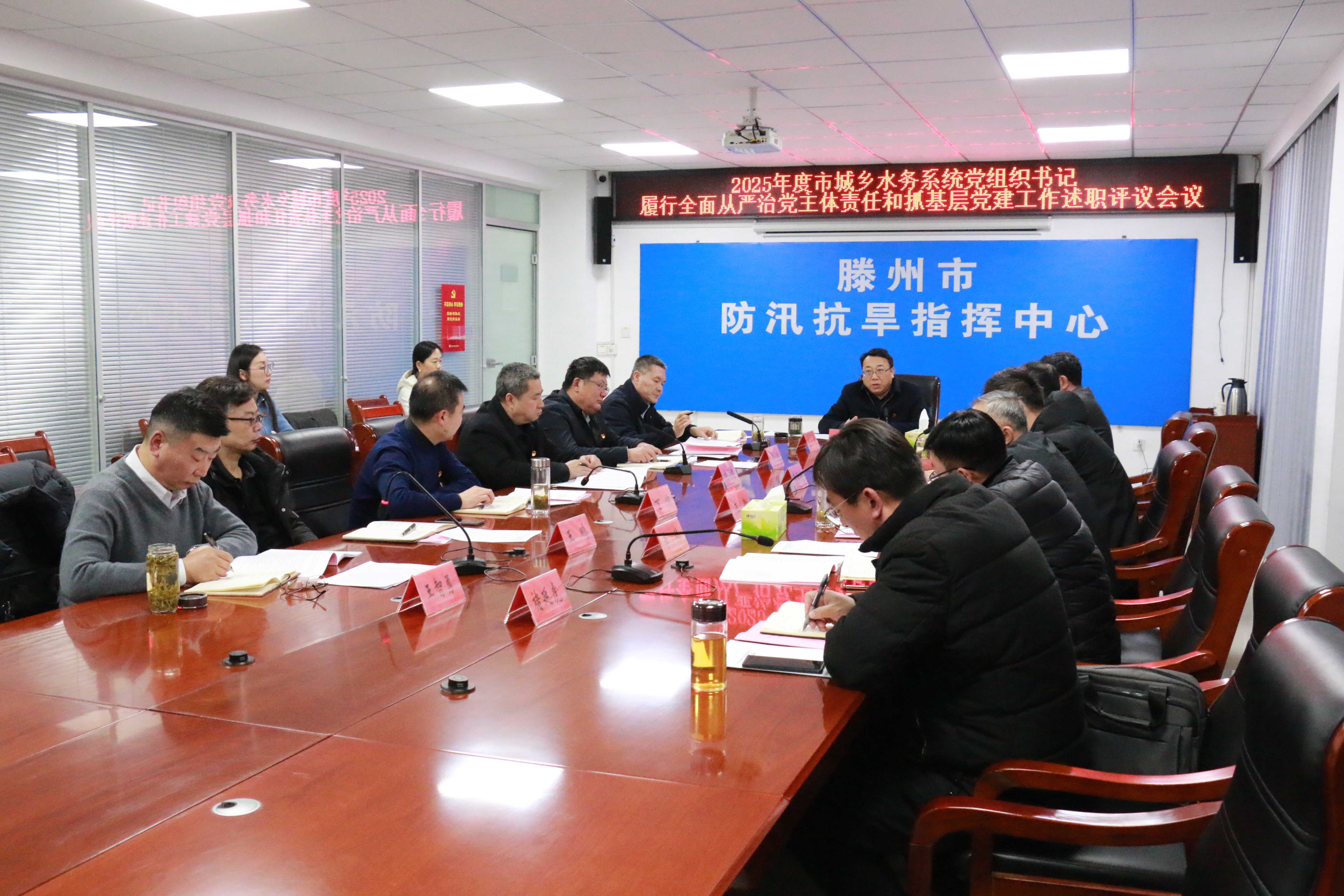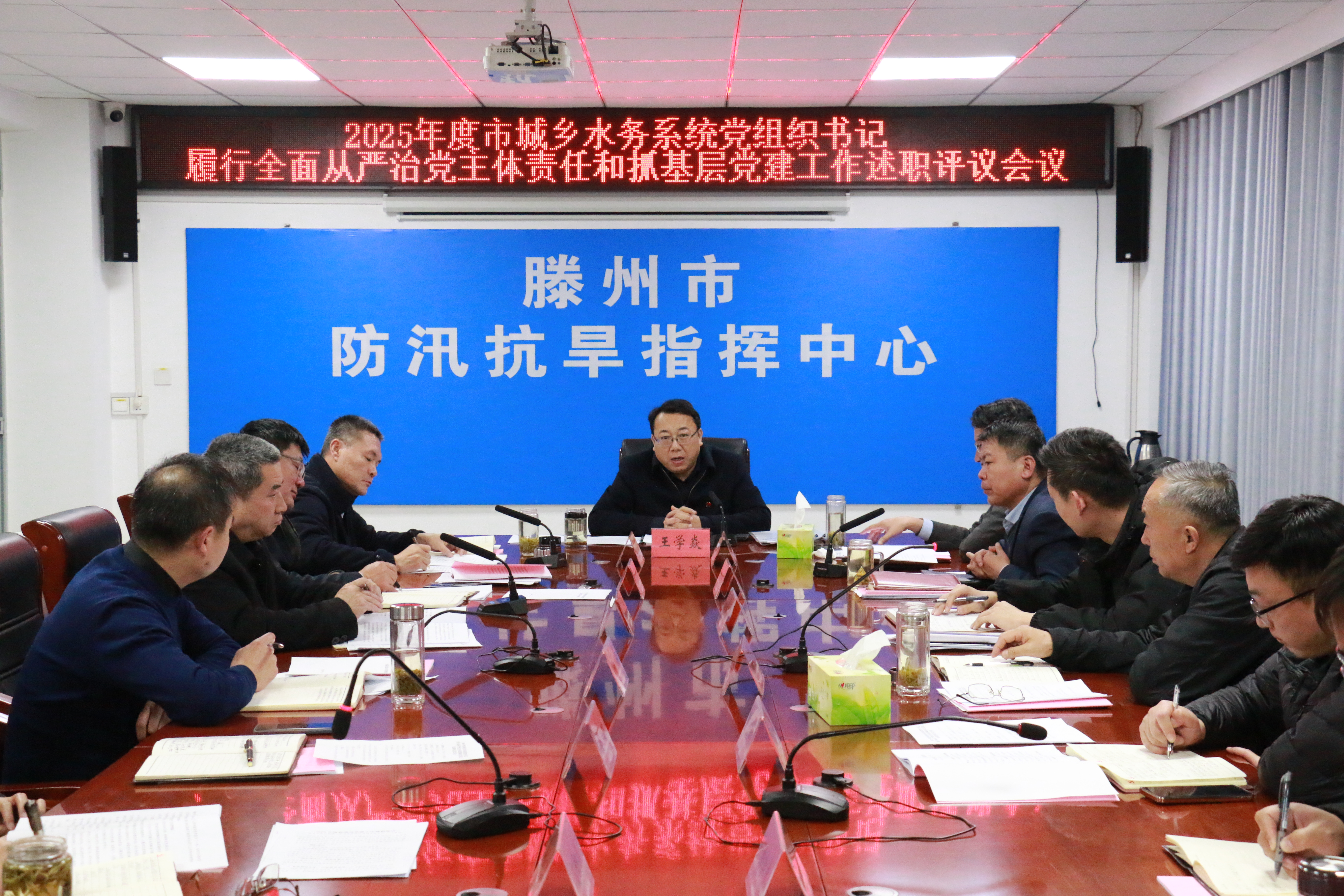 1月28日,2025年度市城乡水务系统党组织书记履行全面从严治党主体责任和抓基层党建工作述职评议会议召开。直属机关党委副书记王军伟同志主持会议,直属机关党委书记王学焱同志作点评讲话,党组班子成员、直属机关党委委员及所属各党总支、党支部书记参加会议。