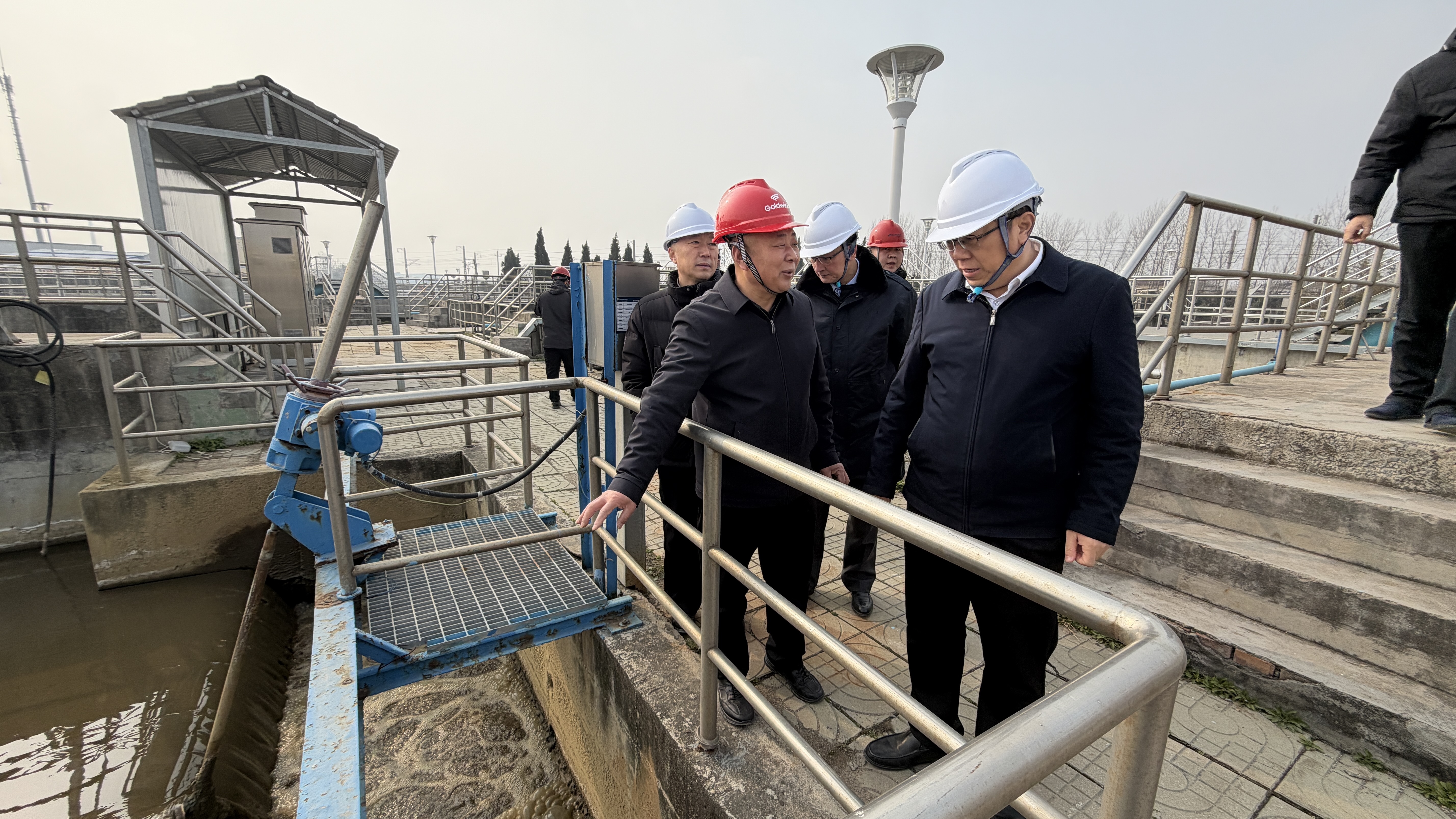 王学焱实地察看污水处理厂运营情况,详细了解生产工艺运行、出水水质监测、安全生产责任落实等工作情况,并就面临的重难点问题与现场人员进行交流。