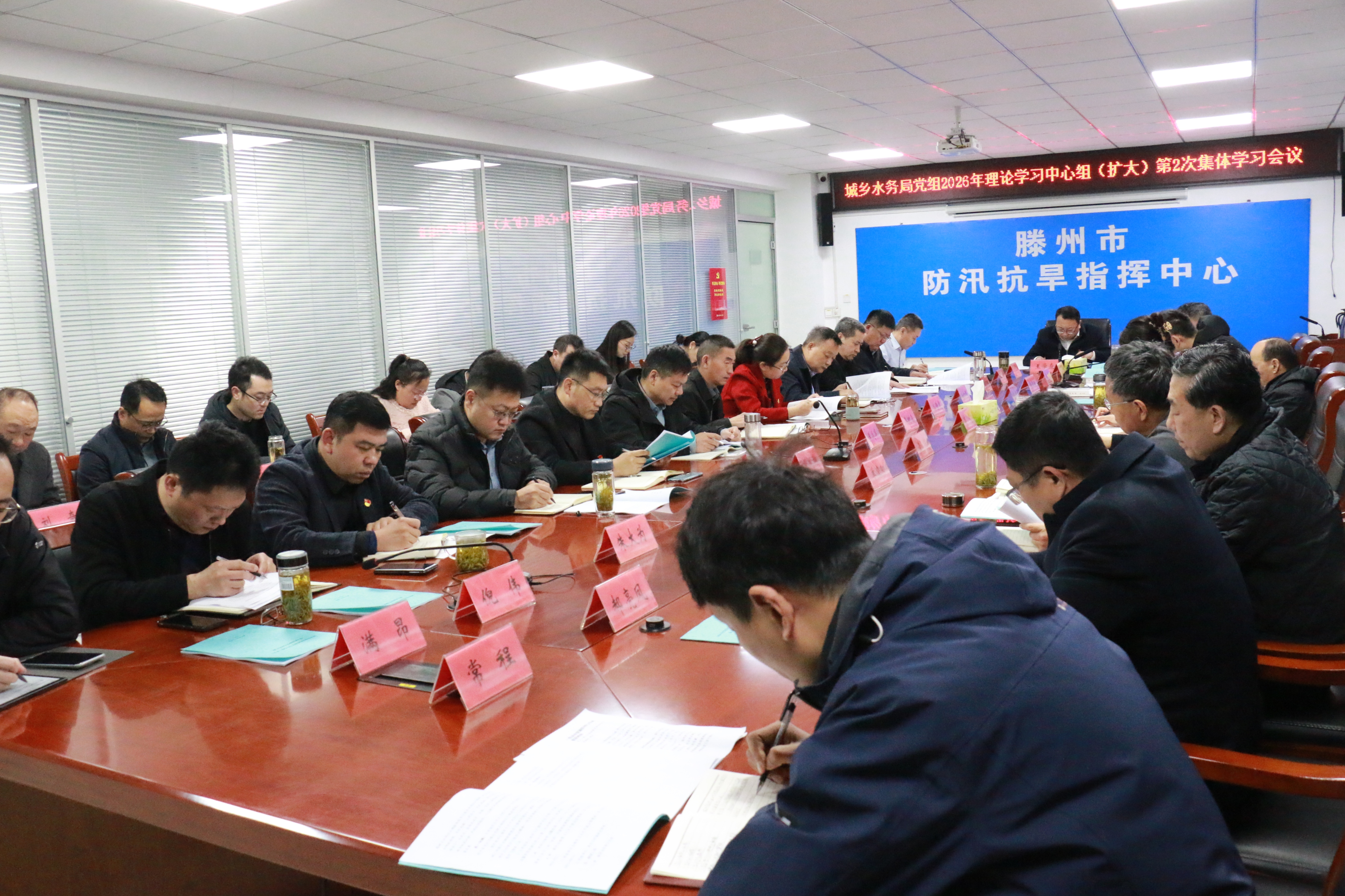 2月28日,市城乡水务局党组理论学习中心组(扩大)第二次集体学习会议召开。会议围绕践行正确政绩观、贯彻落实全市经济工作会议精神及加强党风廉政建设等内容开展集中学习研讨。党组书记、局长王学焱主持会议并讲话,党组领导、科级干部、机关各科室负责人及相关人员参加会议。