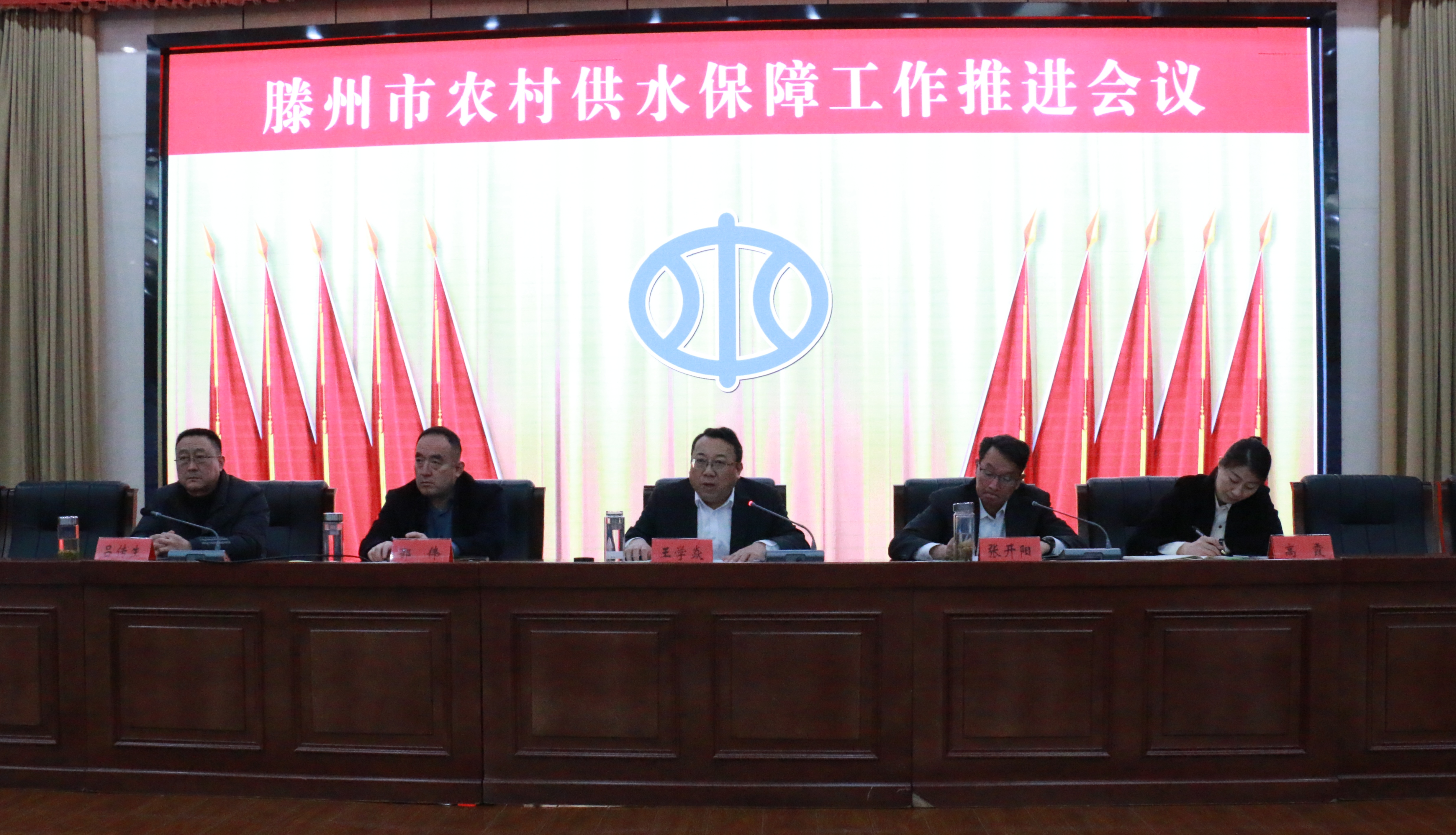 3月6日,滕州市农村供水保障工作推进会议召开。市城乡水务局党组书记、局长王学焱主持会议并讲话。党组成员、副局长张开阳,市水发集团总经理郭伟,各镇街分管负责人、水利站长,市水发集团相关负责同志参加会议。