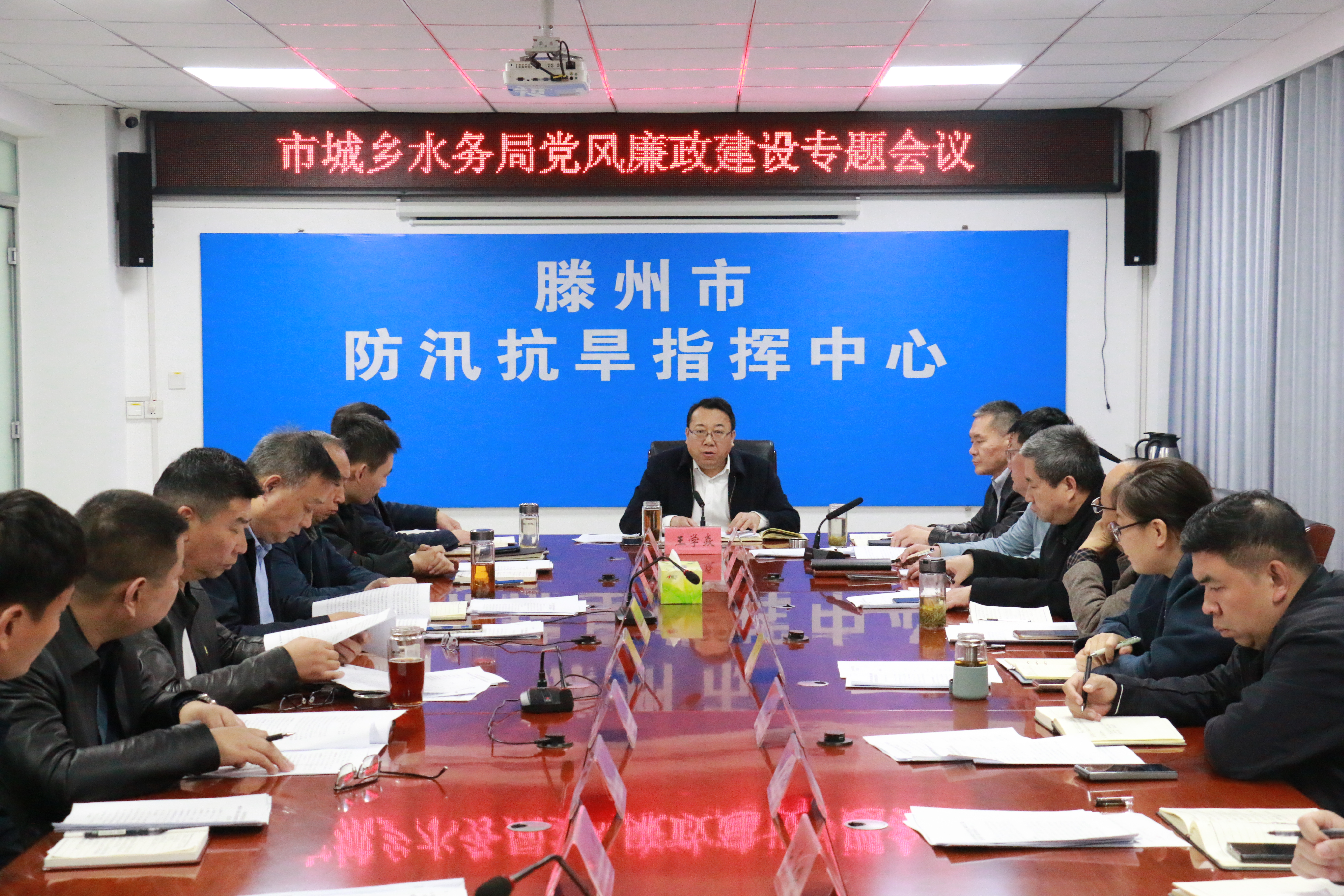 3月13日,市城乡水务局召开党风廉政建设专题会议,深入学习贯彻上级关于全面从严治党的部署要求,系统总结2025年工作成效,全面部署2026年重点任务。局党组书记、局长王学焱主持会议并讲话,局党组领导、中心负责人、机关科级干部、直属各党组织书记、机关科室负责人及有关人员参加会议。