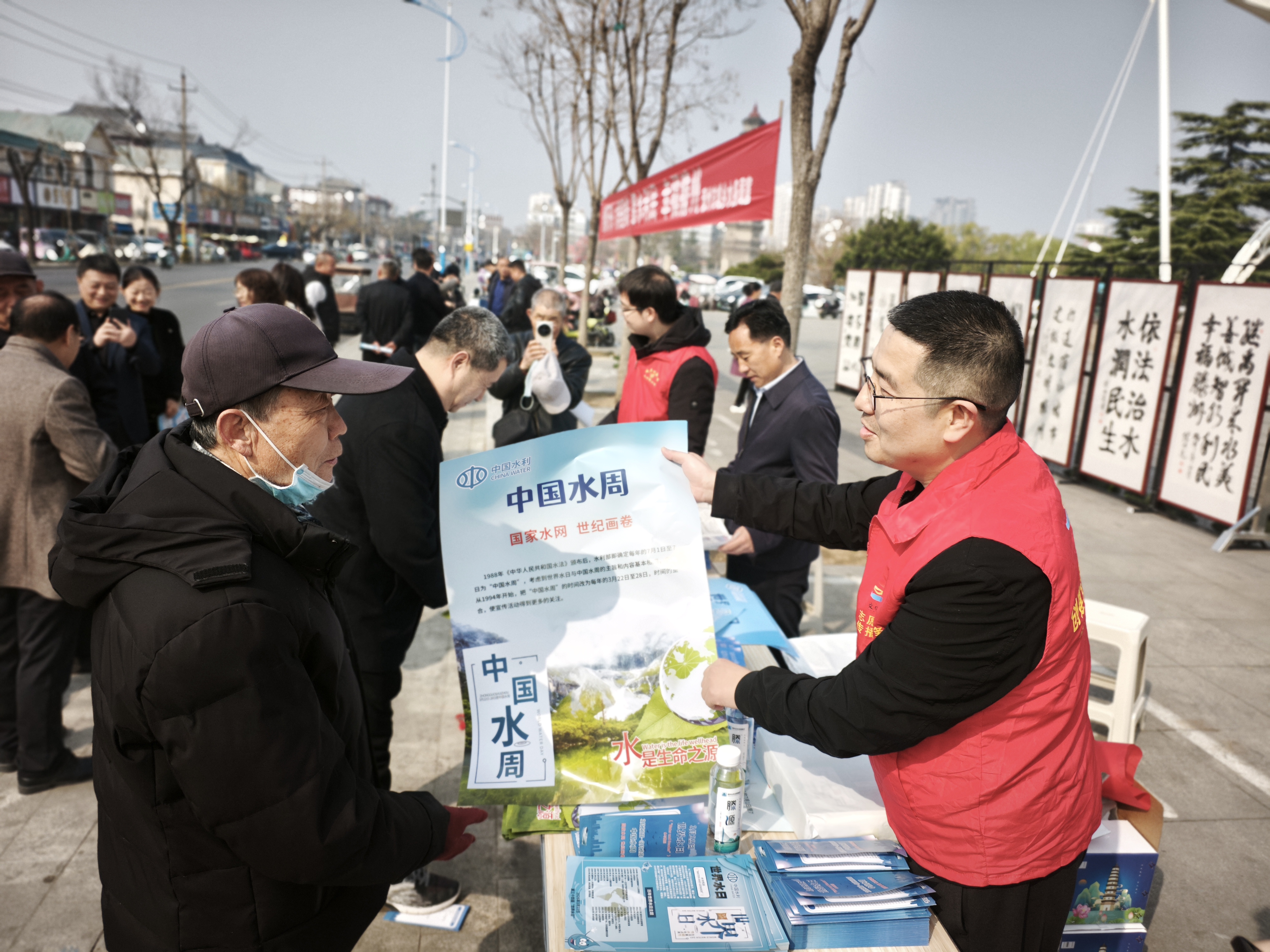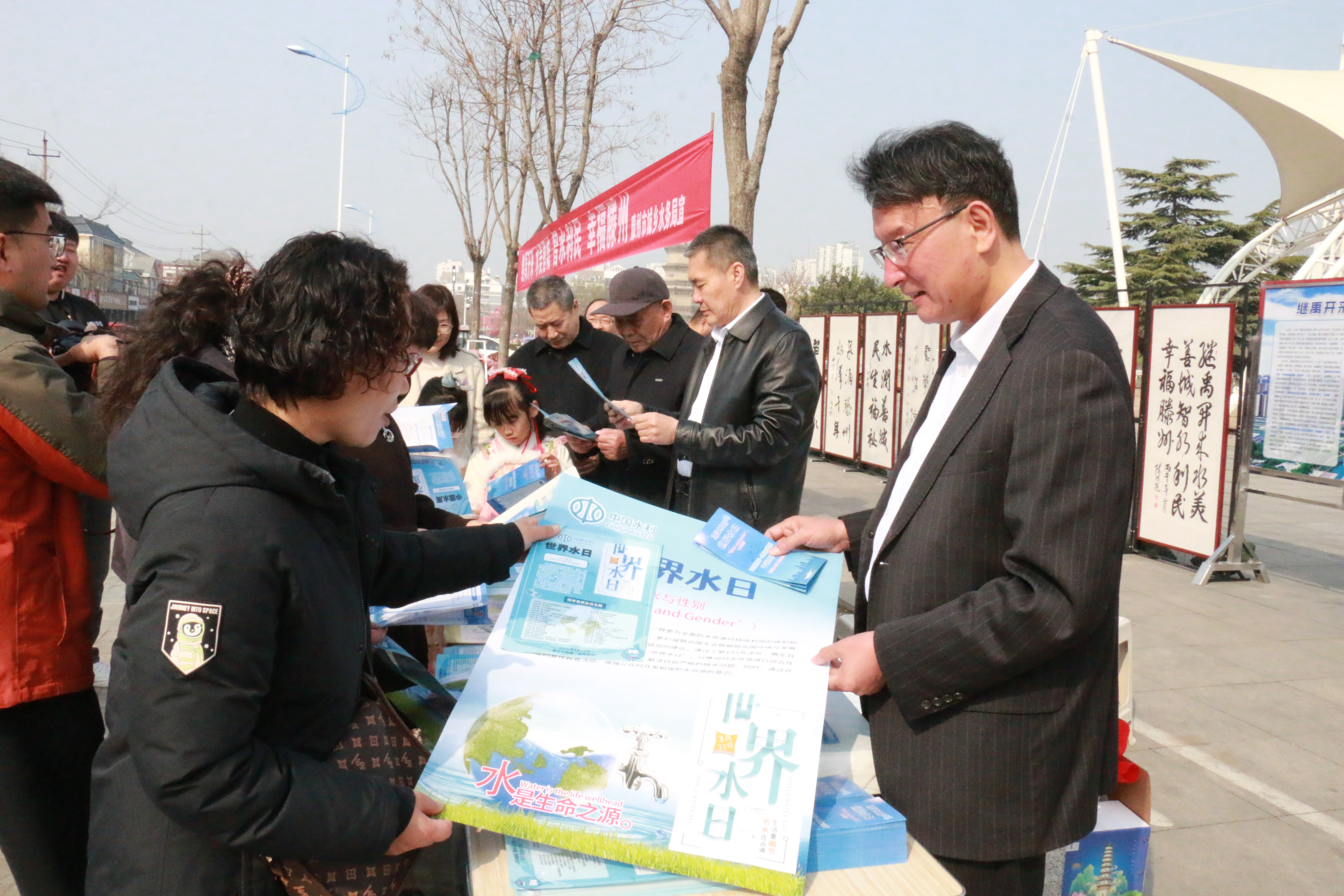 3月22日“世界水日”当天,在龙泉广场设立集中宣传站点。工作人员与志愿者通过摆放宣传展板、开展书法创作展览、发放知识手册、发布节水公益短信、LED屏播放节水宣传公益广告等形式,向市民宣传水法规政策、治水理念,普及科学节水、依法护水、高效用水相关知识,展示我市近年来在水网规划、建设和管理中的工作开展情况,推动更多市民了解和支持国家水网工程,促进水资源优化配置和高效利用。