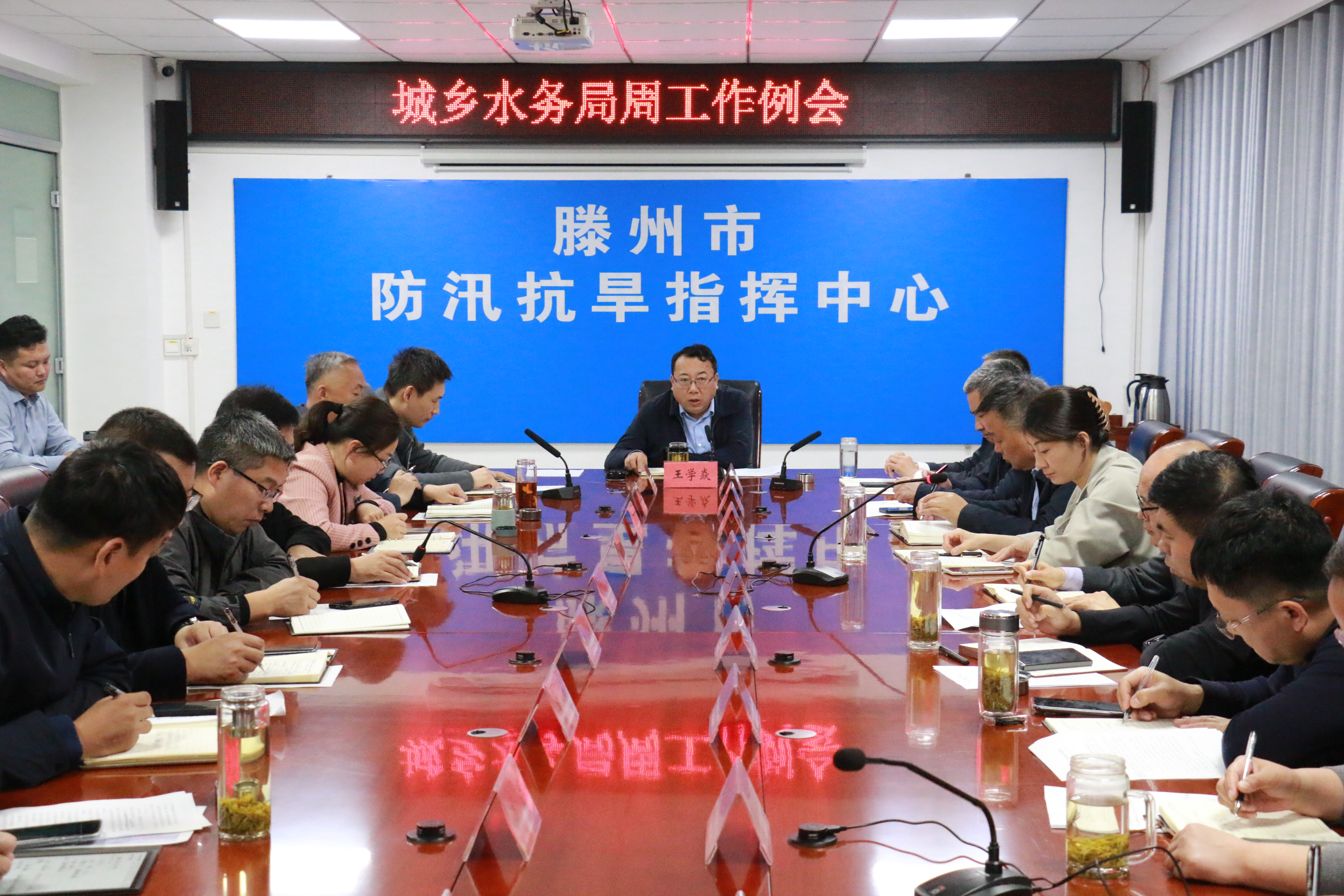 3月30日,市城乡水务局召开周工作例会,总结复盘上周工作开展情况,安排部署本周及下阶段重点工作任务。会议由党组书记、局长王学焱主持并讲话,局党组班子成员、各中心负责人、机关副科级及以上干部、各中心副主任、机关各科室负责人参加会议。
