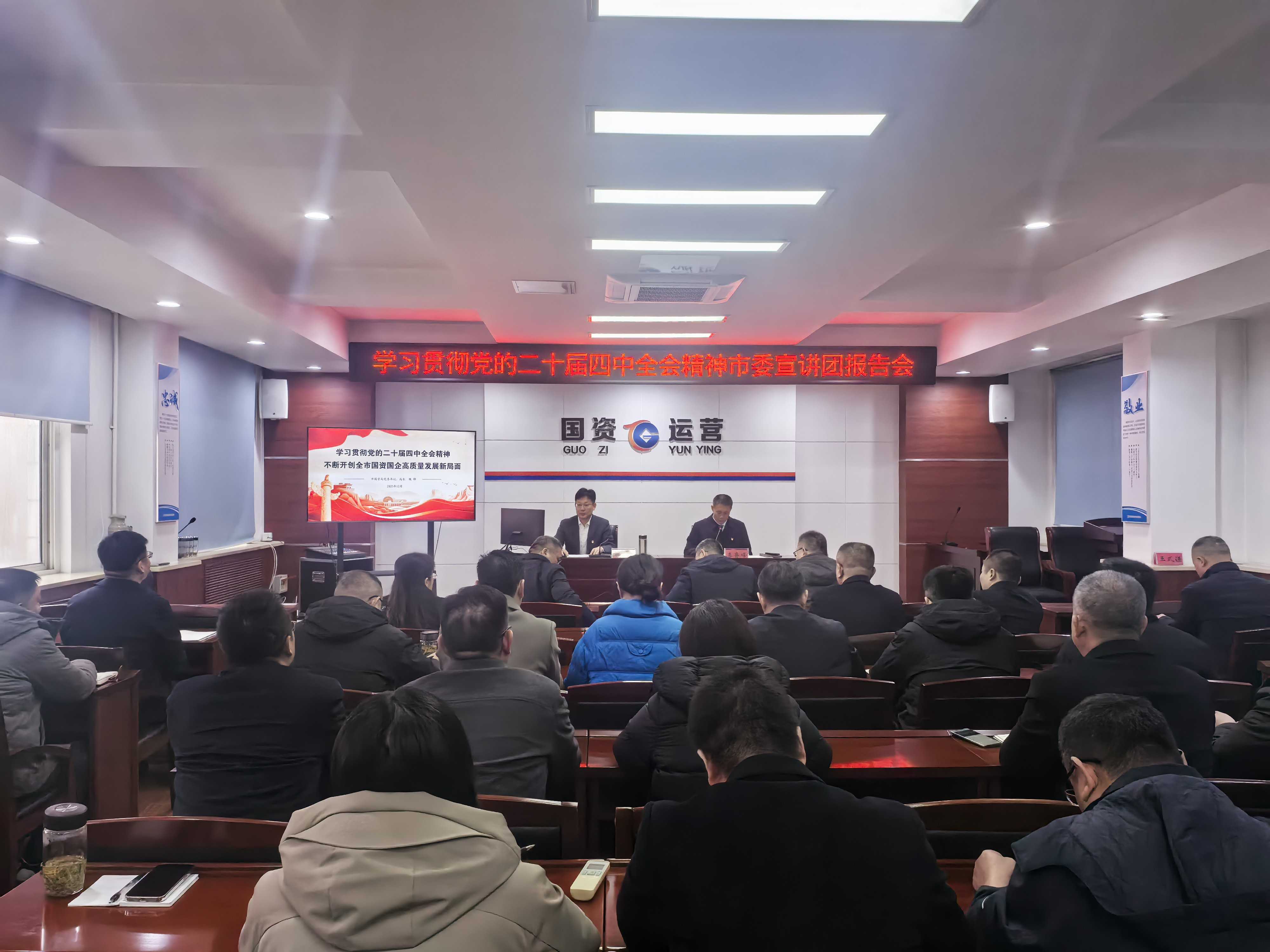 根据市委统一安排,12月13日,市国资国企系统学习贯彻党的二十届四中全会精神市委宣讲团报告会在国资公司举行。市委宣讲团成员、市国资局党委书记、局长魏锋作宣讲报告。市国资局党委班子成员、机关部分党员干部,国资公司领导班子成员、总部科室负责人及权属企业班子成员80余人参加会议。会议由国资公司党委书记、董事长李鲁峰主持。
