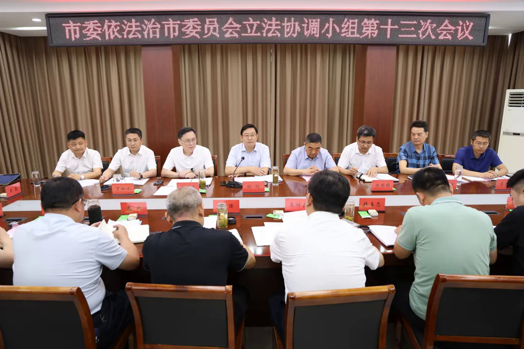 6月18日,市委依法治市委员会立法协调小组第十三次会议召开。市人大常委会副主任、市委全面依法治市委员会立法协调小组组长孙剑出席会议并讲话。市人大常委会委员、市人大监察和司法委员会副主任委员周茂林,市人大常委会法制工作委员会副主任杨国桢,市司法局党组书记、局长吕卫民;市交通运输局党组书记、局长孟祥磊,党组成员、副局长赵强等参加会议。