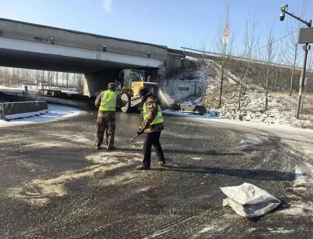 快速响应,立即执行预案。立即启动冬季农村公路应急保畅预案,统筹人员、机械与物资,全面进入应急状态。为提升除雪防滑针对性,中心提前备足50吨融雪剂,第一时间分发至各片区执法中队,重点针对桥梁、急弯、陡坡等易结冰路段开展撒布作业,保障关键路段通行安全。
