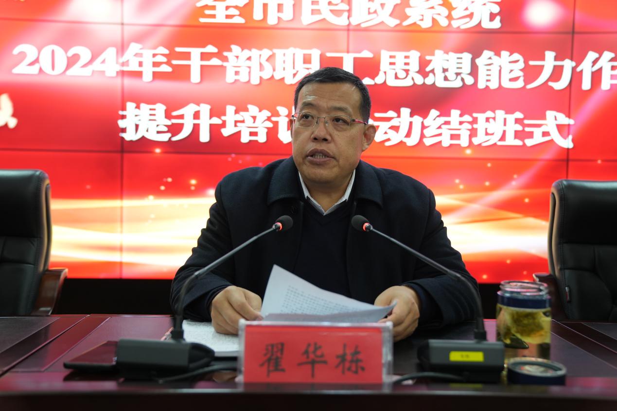 翟局长在结班式指出,我们已经连续三年成功举办全市民政系统培训活动,今年继续挖掘培训内容的深度、拓展培训影响的广度,在各镇街分管镇长、民政科,局机关各科室、中心、单位,各养老机构的积极参与下,圆满完成培训任务,取得良好活动效果。翟华栋要求,一要“学”字为先,勤思笃学强能力。要坚持用党的创新理论武装头脑,深入学习贯彻习近平新时代中国特色社会主义思想,持续擦亮“中华善城 兼爱民政”这张名片。二要“实”字当头,干在实处抓落实。“喊破嗓子不如甩开膀子”,广大民政系统干部职工要进一步做细做实民政工作,兜住兜牢基本民生底线。三要“争”字为要,走在前列勇争先。要强化统筹谋划的能力,要有争先进位的方法,要有争先进位的干劲,提速提效,立说立行,出实招、办实事、求实效。四要“勇”字为纲,担当作为见真章。要勇于担当、敢于担当,主动作为、尽职尽责,勇于创新、敢闯敢试,知难而进、迎难而上,力争重点业务领域取得改革新突破。五要“清”字为本,廉洁自律守初心。要严格自律摆正位置,严守职责主动服务,守住清正廉洁的底线,为民政事业发展提供坚强的政治和组织保障。