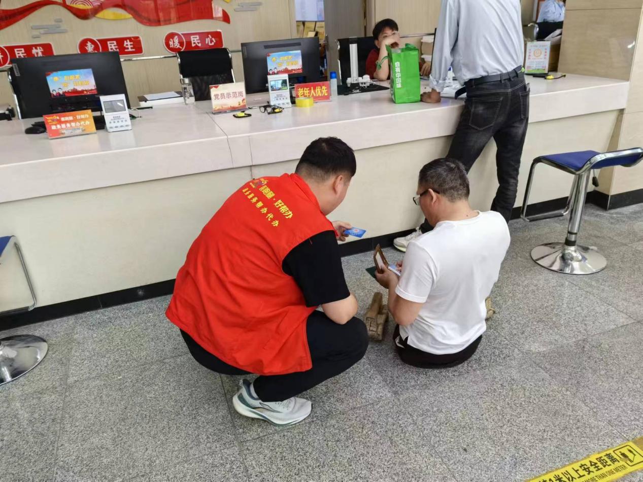 他的身影在大厅门前缓缓出现,帮办代办人员快步上前,搀扶他的身躯,与他耐心交谈了解他所需要办理的相关业务并慢慢的将他扶到对应业务窗口。考虑到办理人的实际情况,帮办代办人员主动撑起办理人与业务窗口之间的桥梁。沟通信息,传递材料,说明讲解。帮助办理人完成所需业务,解决群众急难愁盼的实际难题。业务办理结束后帮办代办工作人员又将办理人搀扶至门口,帮助他登上家属车辆。