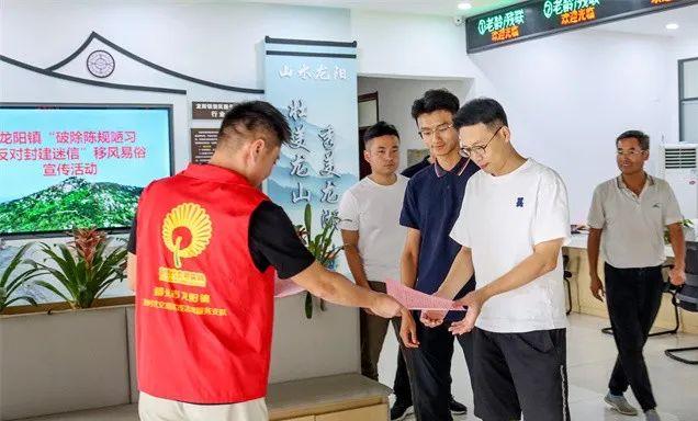 为倡导科学健康生活方式,树立文明向上乡风,8月14日,龙阳镇民政科、龙阳镇新时代文明实践所联合开展“破除陈规陋习 反对封建迷信”移风易俗宣传活动。