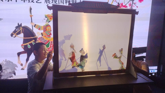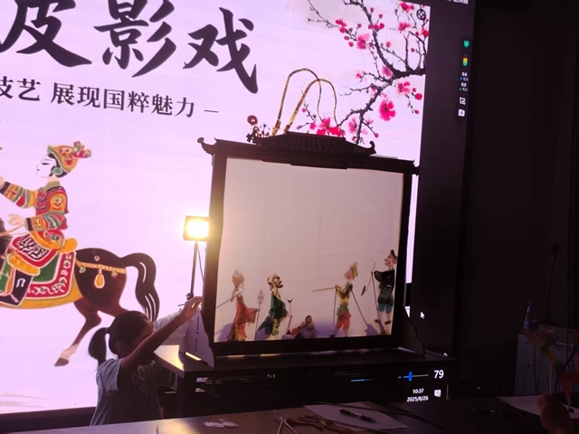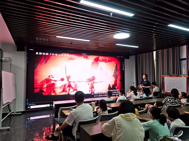 最激动人心的是皮影表演环节。传承人操控着专业皮影,与孩子们手持自制作品同台演绎“三打白骨精”片段。幕布上,孙悟空腾云驾雾、猪八戒憨态可掬,孩子们的笑声与欢呼声此起彼伏。家长们则用镜头记录下这一珍贵时刻。