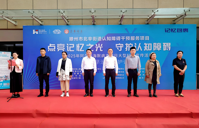 2025年9月21日,北辛街道映奎园社区开展“点亮记忆之光,守护认知障碍”世界阿尔茨海默病主题日活动。本次活动由滕州市委社会工作部、共青团滕州市委、滕州市民政局指导,北辛街道联合滕州市上善社会工作服务社、滕州市学雷锋志愿者协会等单位共同举办。滕州市委社会工作部副部长李玉清,共青团滕州市委副书记靳浩,北辛街道党工委副书记闵庆跃,相关工作岗负责人,相关片区、社区负责同志及爱心企业参加活动。本次活动以“多元互动+专业服务”的模式,为社区长者打造了一场兼具知识密度与情感温度的记忆健康之旅,用行动诠释对老年人的关怀。