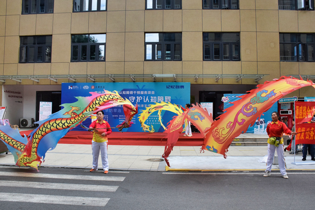 活动在社区健身队表演的《中国龙》节目中拉开帷幕,展现了社区居民积极向上、健康阳光的精神风貌。随后,启动大型科普宣传与便民服务活动,设立义诊、防诈宣传、健康咨询、认知训练、爱心义卖、便民服务和跳蚤市场七大功能区。义诊区提供血压、血糖、视力检测及认知功能初步筛查;认知训练区通过6项游戏互动发放“记忆包裹”,提升居民参与积极性;防诈宣传区普及养老诈骗防范知识;便民服务区提供理发、磨刀、修家电等贴心服务,受到居民广泛好评。