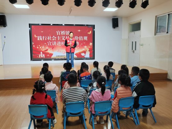 为深化未成年人思想道德建设,近日,官桥镇新时代文明实践所走进镇中心幼儿园开展践行社会主义核心价值观宣讲进校园活动。