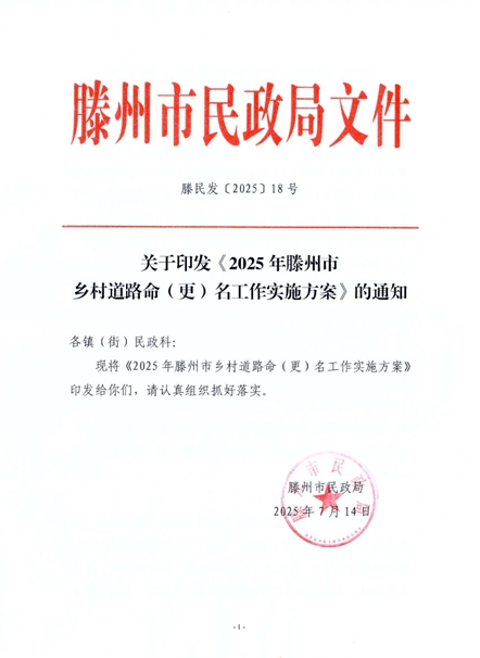 为规范活动的开展,市民政局专门制发了《2025年滕州市乡村道路命名工作实施方案》,根据《方案》,命名工作的范围主要为:滕州市范围内镇建成区、街道内的乡村道路;国道(省道、县道)经过镇建成区段道路;通行政村(社区)、居民点,通旅游景点、革命纪念地、历史文化遗址,通镇村企业、物流快递网点、农家乐、采摘园等乡村道路;村居民委员会所在地、居民点内部道路;其它有命名需求的乡村道路等。同时,《方案》明确了乡村道路命名的原则和规则。