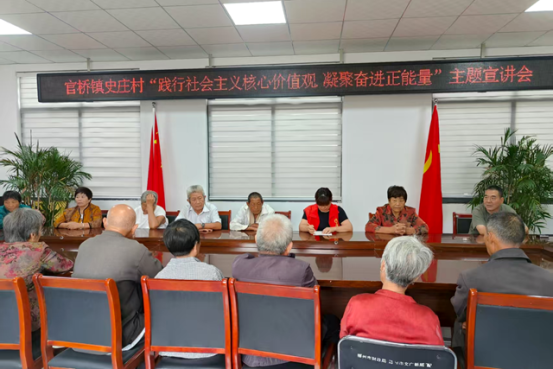 为深化精神文明建设,弘扬时代新风,近日,官桥镇史庄村开展“践行社会主义核心价值观 凝聚奋进正能量”主题宣讲会。