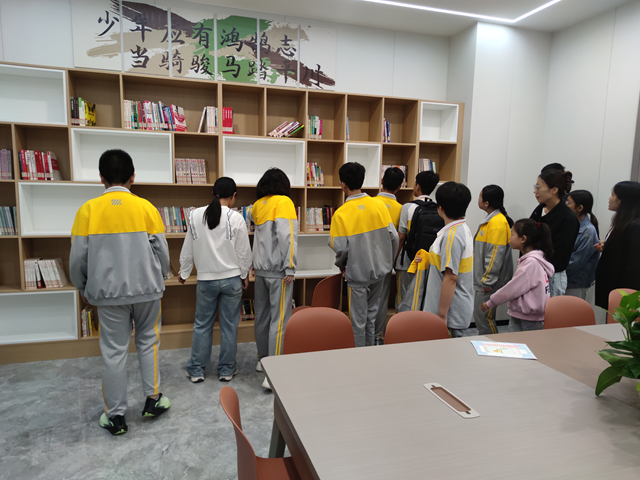 在社区讲解人员的引导下,师生们有序参观了党群服务中心各功能区域。讲解人员结合实景,详细介绍了社区在便民服务、文化建设、志愿服务等方面的职能,重点讲解了三楼的特色功能空间。这里不仅设有面向青少年的自习托管室,为学生提供安静的学习环境,还配备了藏书丰富的图书室和开放式书画室,满足不同兴趣需求。
