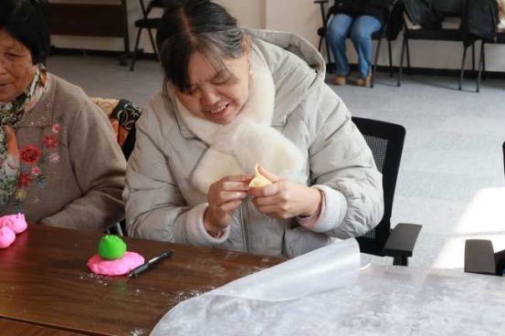 随着培训的推进,学员们逐渐掌握了制作技巧,开始发挥自己的创意。绿色的面团在手中变成了栩栩如生的叶片,红色的面团被捏成了小巧玲珑的花朵,紫色的面团则化作一个个寓意吉祥的元宝。社区居民王阿姨拿着自己刚做好的“花朵馒头”满脸笑容:“平时在家只会做普通的白馒头,今天学会了用彩色面团做造型,以后给家里人做饭也能更有新意了。”