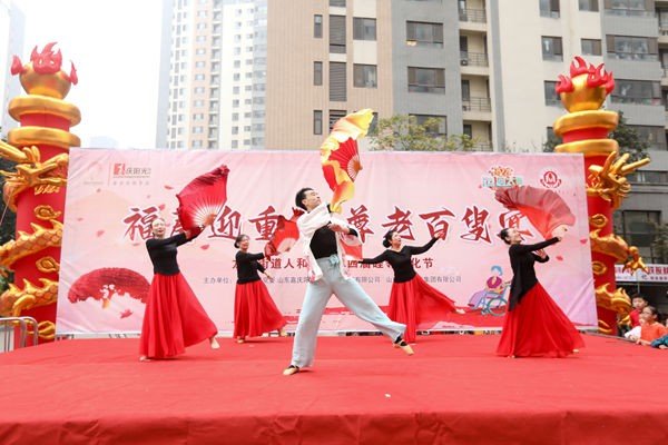 活动现场,近百位老人欢聚一堂,欣赏文艺“大餐”,共话家常、共享佳肴。人和社区党委书记唐超首先为活动致辞,随后,武术表演《中国功夫》、器乐合奏《唱支山歌给党听》、豫剧串烧《祖国的大建设 一日千里》、京剧《红灯记 刑场斗争》、歌曲《母亲》、京剧《沙家浜军民鱼水情》《白毛女》、歌曲《手拿碟了敲起来》、杂技表演《抖空竹》、戏曲联唱《柳琴戏 喝面叶 石榴开花红似火》、豫剧《 李双双 洼洼地里好庄家》《大唐贵妃梨花颂》等节目轮番登场,熟悉的旋律勾起老人们的回忆,台下跟着哼唱的身影、此起彼伏的掌声,满是对社区“家园”的归属感。